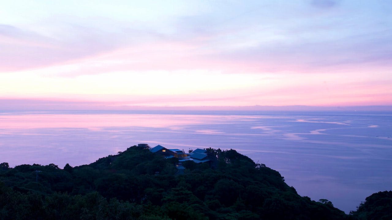 嵐を観る宿 御宿 The Earthは三重県の鳥羽にて、54,000坪の原生林に囲まれた岬の先端に佇み、その日の移り行く岬の自然を眺める高級旅館です。